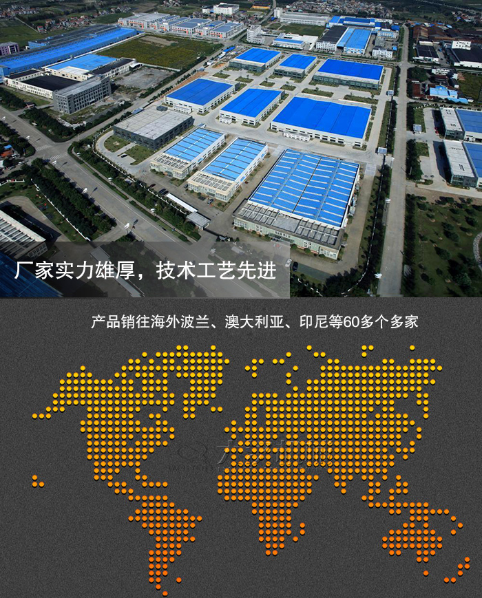 大漢公司建立15年以來,一直通過吸取國外先進工藝和結(jié)合國內(nèi)市場需求進行不斷研發(fā),目前已經(jīng)坐擁100000平方米現(xiàn)代化工業(yè)廠房,擁有各種加工、焊接、裝配設(shè)備百余臺,在崗技術(shù)人員達到上百名,廠家實力頗為雄厚,目前我們的設(shè)備已經(jīng)遠銷國外60多個國家,如:德國、俄羅斯、印度、緬甸、越南等,國內(nèi)用戶遍布廣西,湖南、福建、江蘇、浙江、廣東、云南等30個省市,得到了廣大用戶的高度贊賞。