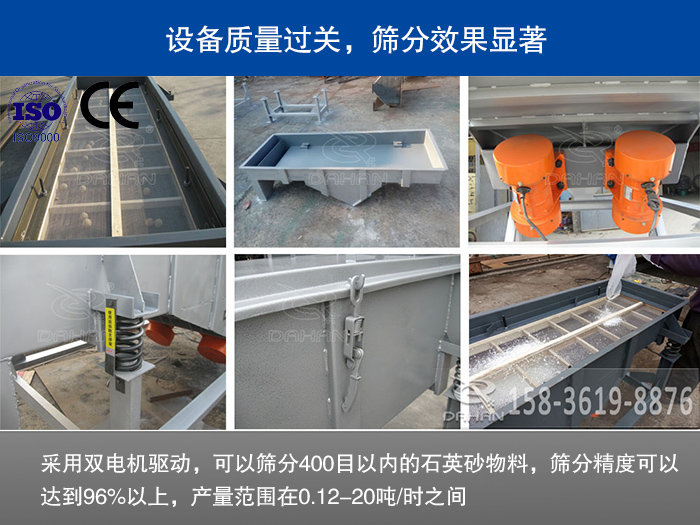 我們廠家的石英砂篩分機選用不銹鋼及碳鋼材質(zhì),板材厚度均在10-12mm之間,可以大大降低設(shè)備的磨損,延長石英砂篩分機使用壽命,大漢石英砂篩分機質(zhì)量已經(jīng)通過ISO9001國際質(zhì)量體系認證和歐盟CE認證,我們的石英砂篩分機是完全達到不合格不出廠,用戶可以放心選購,設(shè)備可以享受7日內(nèi)換貨和15日內(nèi)退貨。