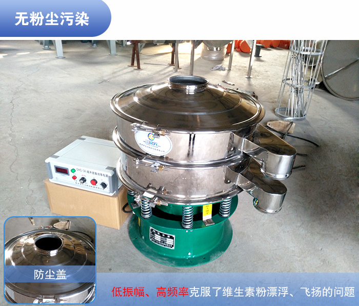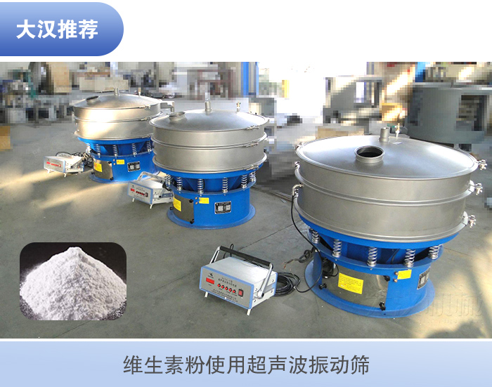 維生素粉屬于醫藥范圍,在選擇振動篩要選擇符合標準,維生素精細目數偏細,為了更好的把控維生素的粒徑大小,對維生素粉顆粒進行大小分級,將其中不符合質量要求的粗料、細粒進行篩除,就建議使用超聲波振動篩。