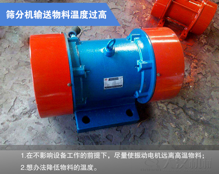 預(yù)防措施:1.在不影響設(shè)備工作的前提下,盡量使振動(dòng)電機(jī)遠(yuǎn)離高溫物料;2.想辦法降低物料的溫度。